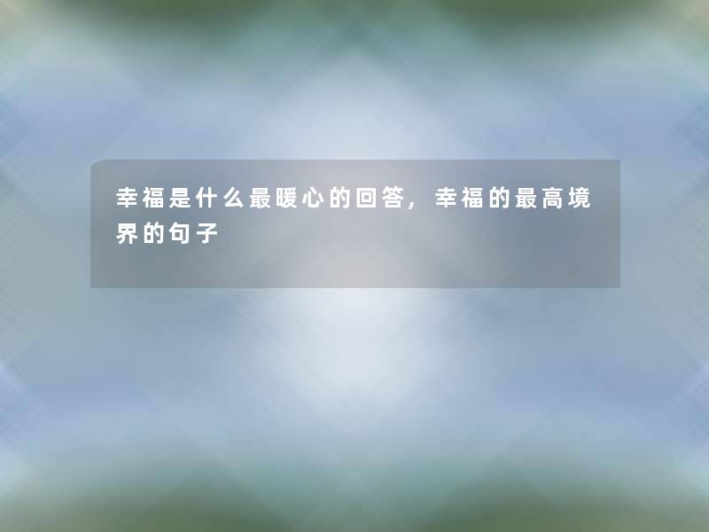 幸福是什么暖心的回答,幸福的高境界的句子
