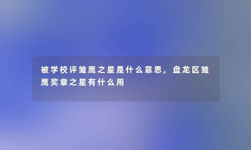 被学校评雏鹰之星是什么意思,盘龙区雏鹰奖章之星有什么用