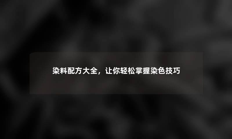 我很乐意为大家分享染料配方大全,让你轻松掌握染色技巧。1. 植物染料:用植物的花、叶、根等部位制作染料,如靛蓝、茜草红等。2. 动物染料:用动物的血、胆汁、骨等制作染料,如紫贝壳紫、蜡黄等。3. 合成染料:用化学方法合成的染料,如亚麻蓝、染料黄等。哪种染料,都需要配方和比例。在染色过程中还需要温度、时间、pH值等因素的控制,以保证染色效果。我想这些简单的染料配方能帮助到大家,让你轻松掌握染色技巧。